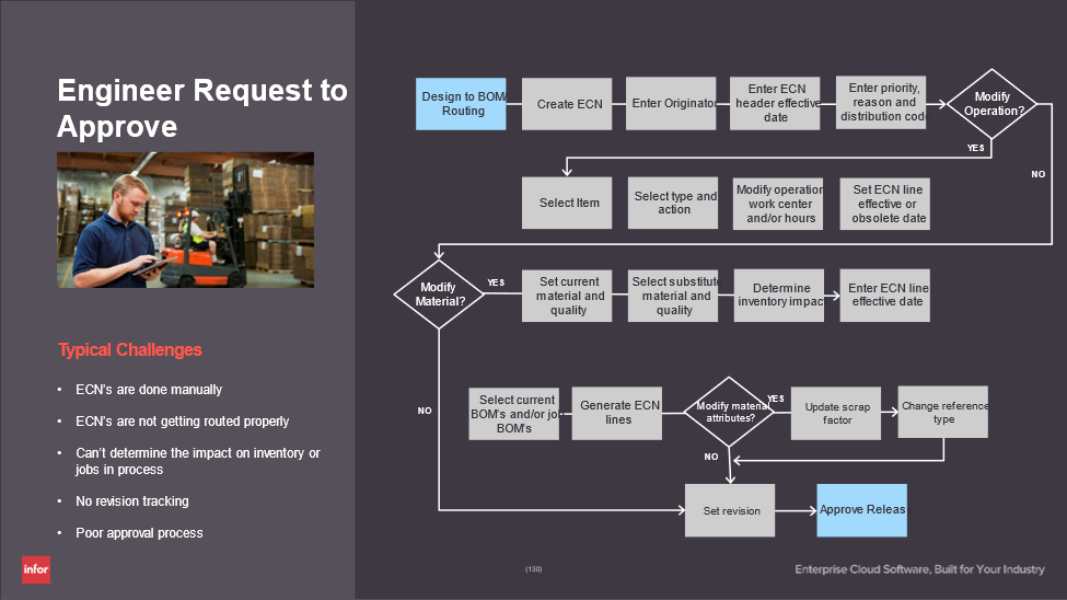 - Infor Product Lifecycle Management for companies that have stringent engineering requirements and want to integrate the engineering activities with SyteLine ERP.